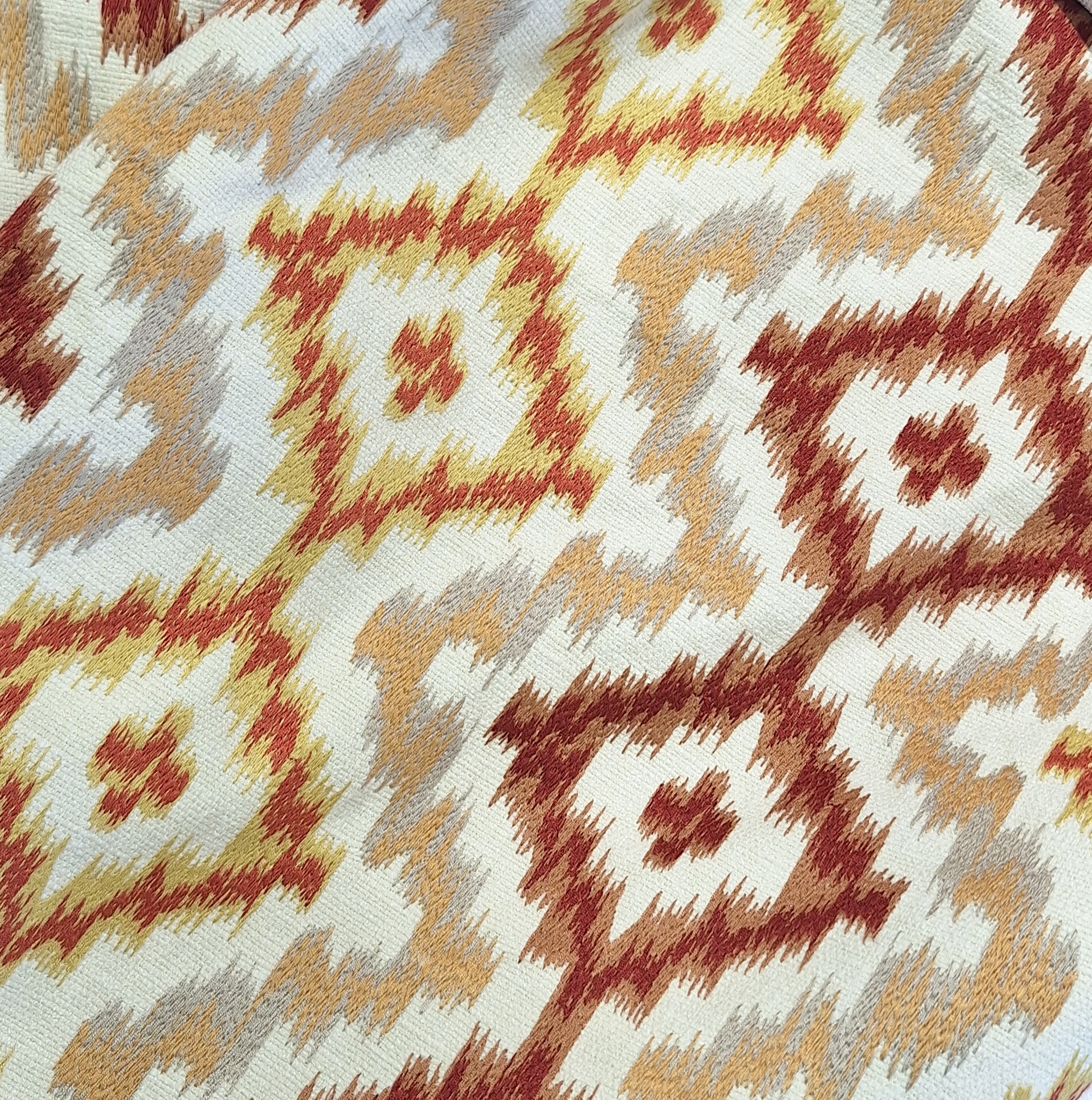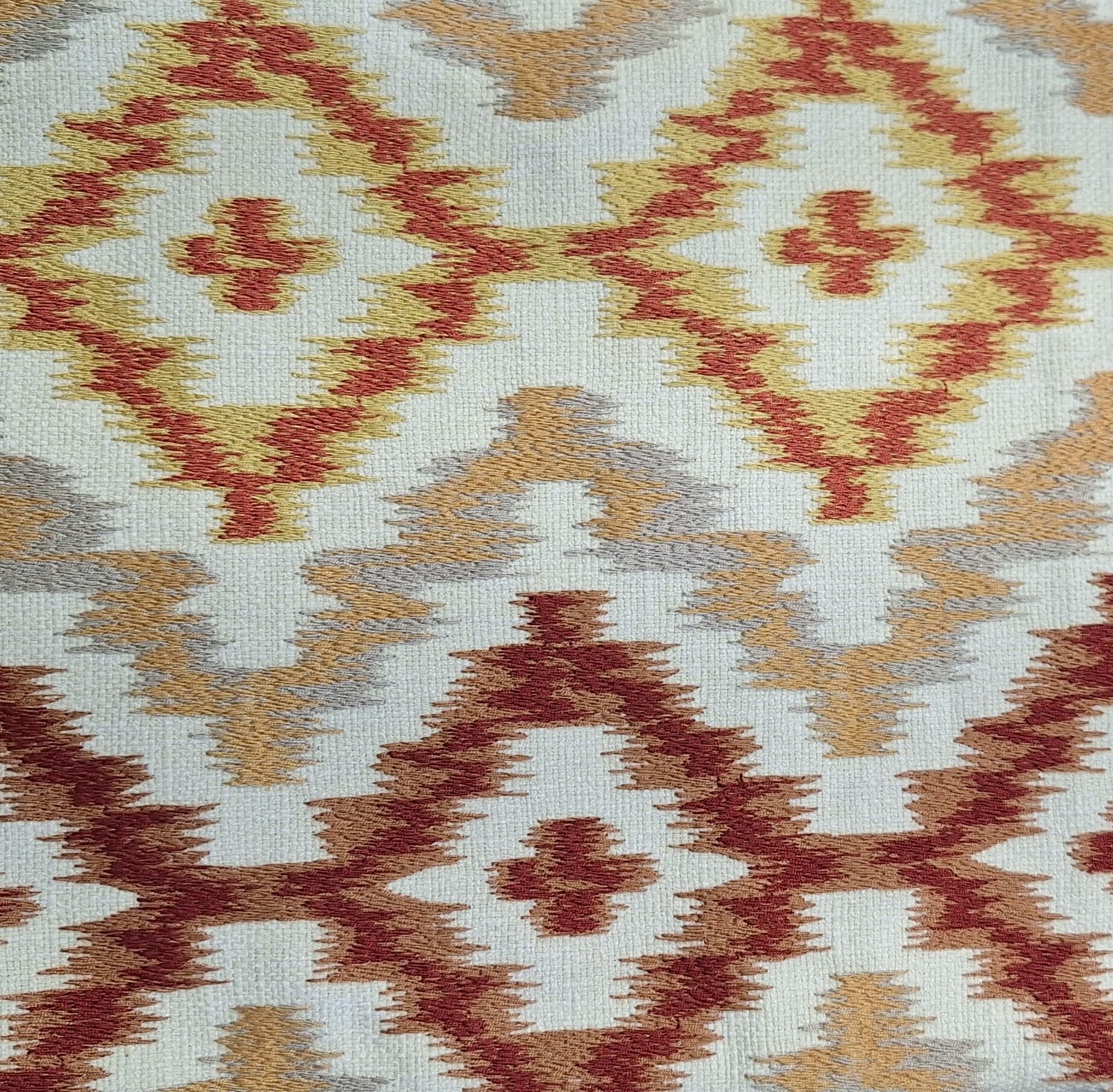 Cor: Branco, bege, mostarda e vermelho queimado