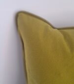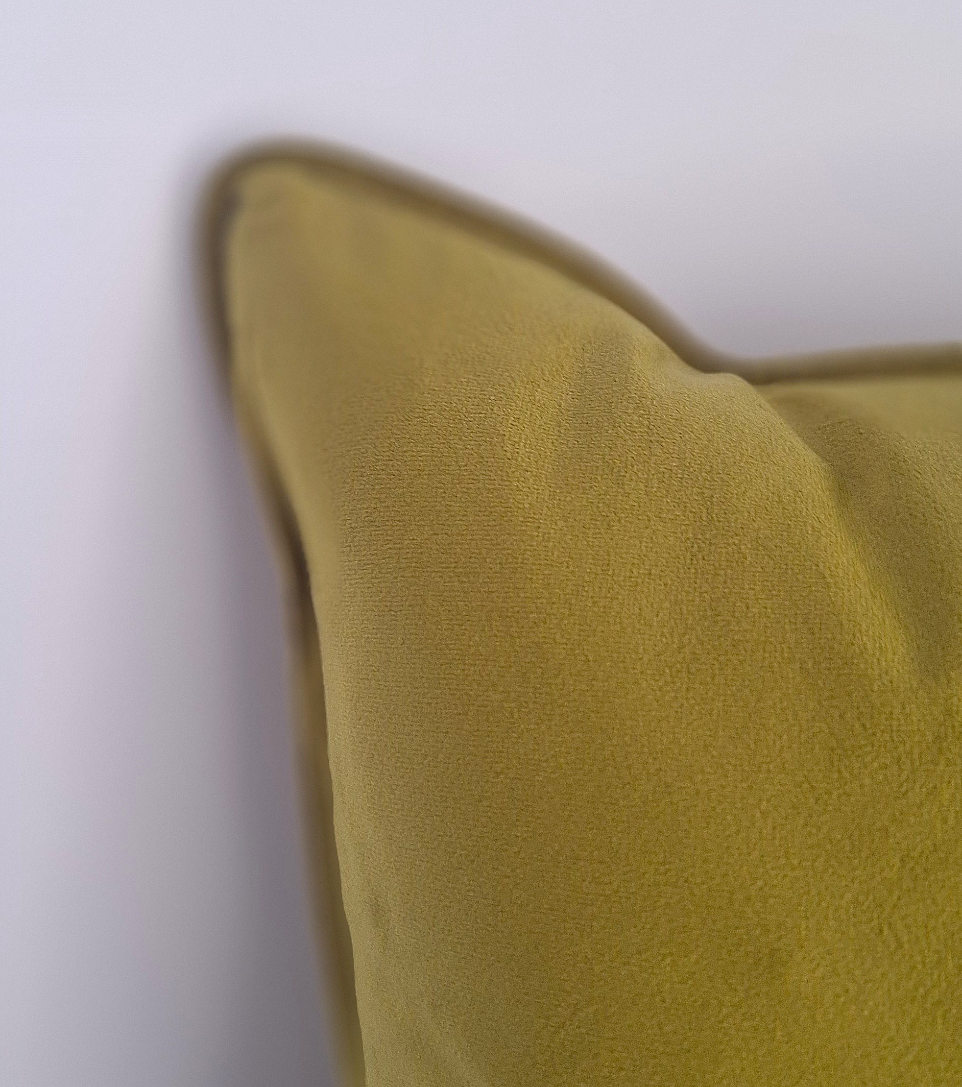 Almofadas em veludo bordeaux, cinza e mostarda, rematadas com vivo — o detalhe que eleva o conforto e dá personalidade ao seu espaço.