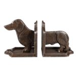 Conjunto de dois belos apoios de livros decorativos com um cachorro Dachshund