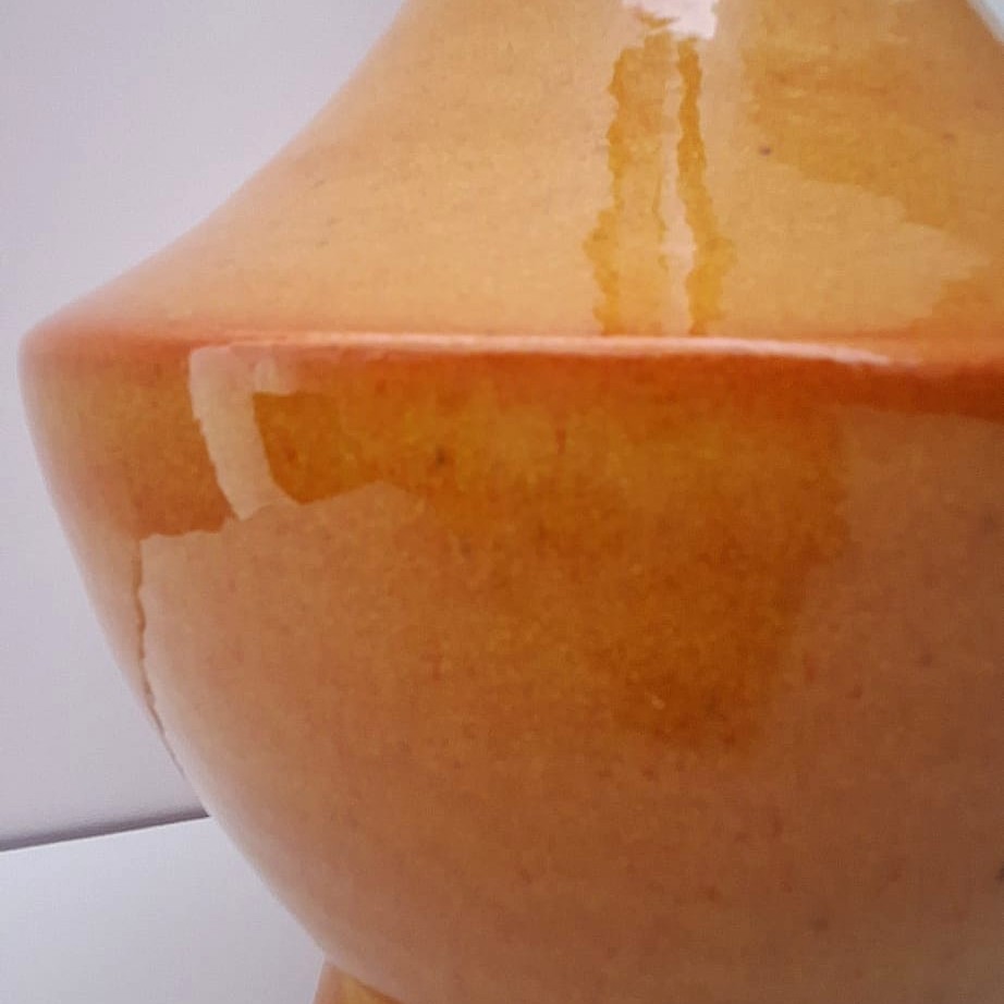 Um apontamento de cor e carácter em cerâmica laranja vidrada, a peça que ilumina antes de acender.