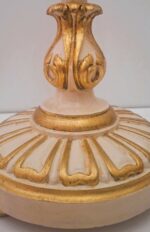 Base de abajur clássica, entalhada e patinada — um toque de história a iluminar o presente.