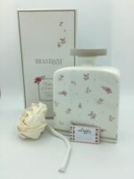Este é um difusor de fragrância é feito de porcelana com um padrão de rosone e a flor difusora é feita de casca/papel.
