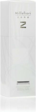 SOFISTICADO: Para uma difusão de fragrância elegante e agradável, o difusor de palheta Zona Milelfiori apresenta um elegante recipiente de vidro com detalhes brancos e metálicos.