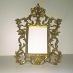 Em metal bronze ou latão, com intricados detalhes florais, de folhas de acanto e conchas assimétricas, que eram populares nos séculos VIII e XIX, produzida na cidade de Braga que conforme a cidade, é também de estilo Barroco/Rococó.