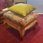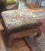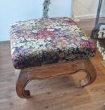 Repousa-pés em tecido de flores vintage e pés robustos em madeira — um convite ao relaxe com charme e personalidade.