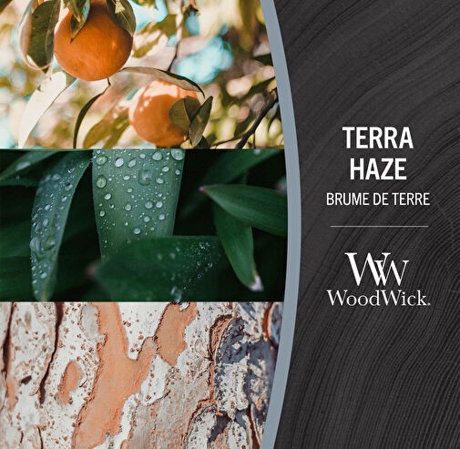 Terra Haze, o aroma vívido e refrescante da chuva no solo, evoca a sensação de que a natureza está sendo reduzida a suas moléculas. Notas de aldeídos, cedro e terra musgosa sobem em direção ao céu, dançando de volta para a atmosfera como névoa.